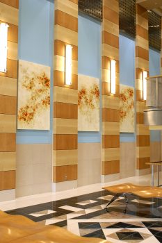 Influenced by classical piano rhythms, Betsy Eby paints with “lyrical buoyancy.” Using palette knives, spatulas, baking mats, and her own hands, Eby seeks to “harness the beauty of musical harmony and the edgy unpredictability of natural wilderness by creating works that look as though the wind itself has flooded the canvas with color and movement.” She works in encaustic, heating and layering wax, keeping visible the passage of time.