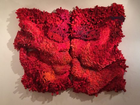 She has been reviewed in national and international publications including Sculpture Magazine, New American Paintings, Fiber Arts, New Art Examiner, Art Papers, and in two of the Manifest International Publications. Her work was on the cover and featured in the fall 2014 issue of Art Voices. She was shortlisted in the 2015 International Aesthetica Art Prize, and included in the publication Future Now. A personal interview with the artist can be found on the Aesthetica site.